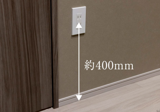 イージーコンセント各居室入り口近くのコンセントは、通常より高めの位置に設定。腰をかがめることなく使え、掃除機などをご使用の時に便利です。 -