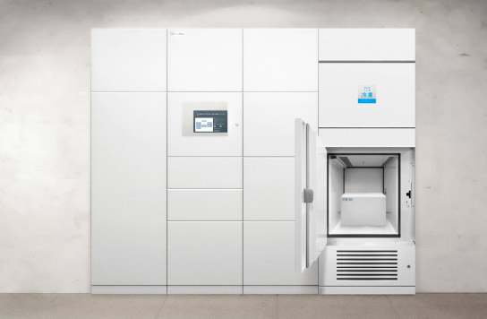 参考写真 共用部冷凍宅配ロッカー不在時でも冷凍品の非対面受け渡しが可能となり、日常生活の利便性はもとより、宅配便の再配達を削減し、ドライバーの労働生産性向上にも寄与する「冷凍宅配ロッカー」を採用しました。 -