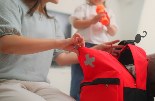 image photo 防災倉庫もしもの災害にそなえて、食べ物や水、応急処置の道具など非常用備蓄品を保管する防災備蓄倉庫を準備をしています。