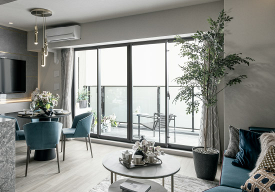 ※掲載のイメージイラストは、計画段階の図面を基に描き起こしたもので、建物形状等は実際とは異なります。また、設計上の都合により変更となる場合があります。形状の細部および設備機器等については省略しています。植栽計画は変更となる場合があり、入居時を想定して描かれたものではありません。葉の色合いや枝ぶり、樹形等は想定ですので、予めご了承ください。※掲載の室内写真は、モデルルーム(Aタイプ)を撮影(2025年3月)したもので、実際とは異なる場合があります。また、撮影日以降の設計上の都合による変更や設備器機の変更については反映しておりません。家具、調度品、小物等オプション仕様は販売価格に含まれておりません。メニュープランおよびオプションにつきましては、お申込みに期限があり、お部屋のタイプ、階数によって設定できない場合があります。また、掲載の間取りは、計画段階のもので、今後変更となる場合があります。