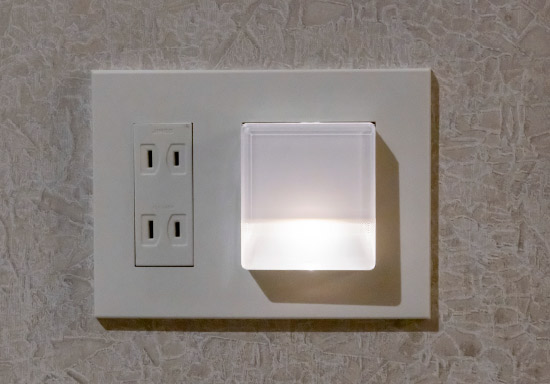 ホーム保安灯廊下には、足元を照らす保安灯。周囲の明るさを感知し自動点灯します。高さも床から約250mmの位置に設定しています。非常時のあかりとしてコンセントから取り外してご使用いただけます。 -